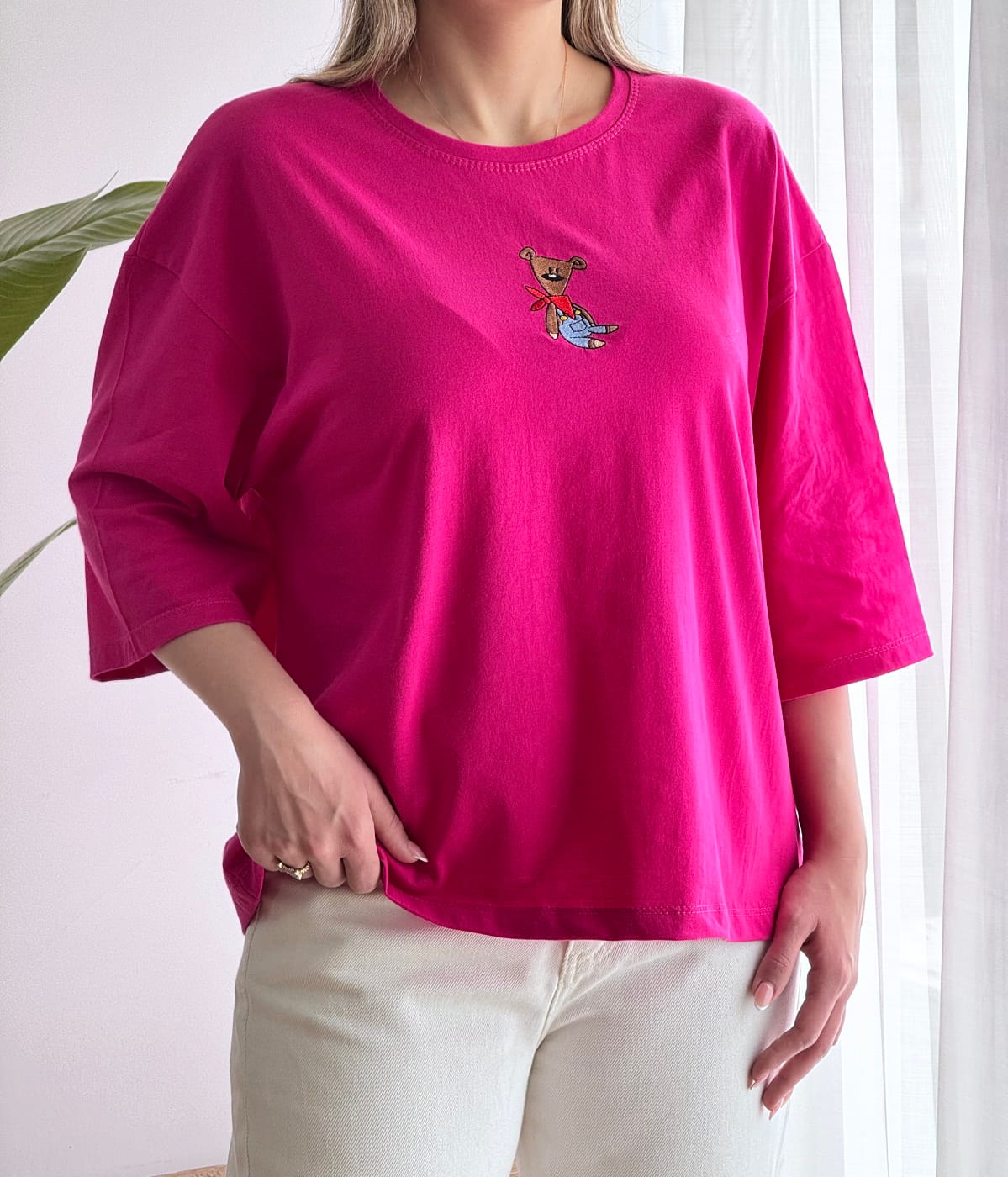 قد تیشرت 64سانت/دورسینه128سانت/دورسینه باکشیدن146 سانت/قد استین 38سانت/دوربازو44 سانت/باکشیدن سانت50سانت